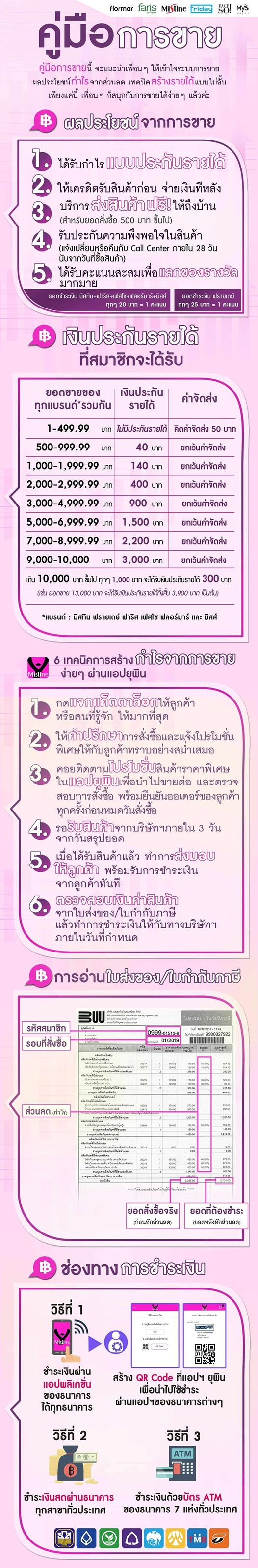 ***ยอดขายทุกแบรนด์สินค้ารวมกันที่เกิน 10,000 บาทขึ้นไป เมื่อมียอดขายทุก ๆ 1,000 บาท ได้รับเงินประกันรายได้ 300 บาท